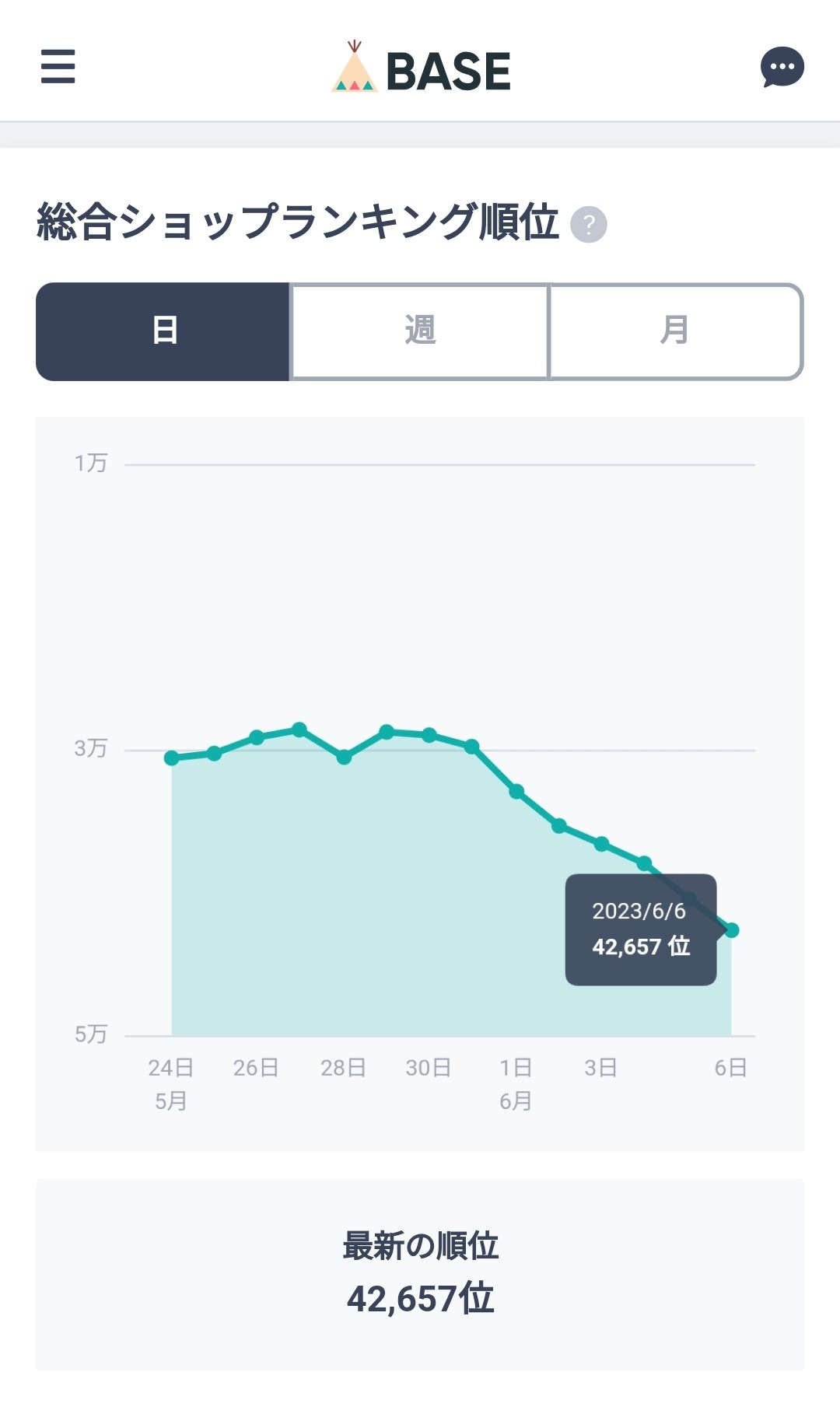 BASEの管理画面にショップの総合ランキング順位を発見しました。
